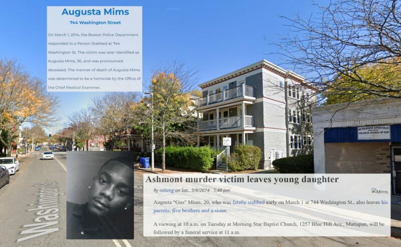 12 years ago today before 5:30pm, Augusta Mims, aged 30, was stabbed outside 744 Washington St in Dorchester. He was brought to the ER at Carney Hospital, where he was pronounced dead.