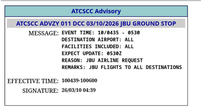 All @JetBlue flights have been put on a ground stop, likely temporary and operational.